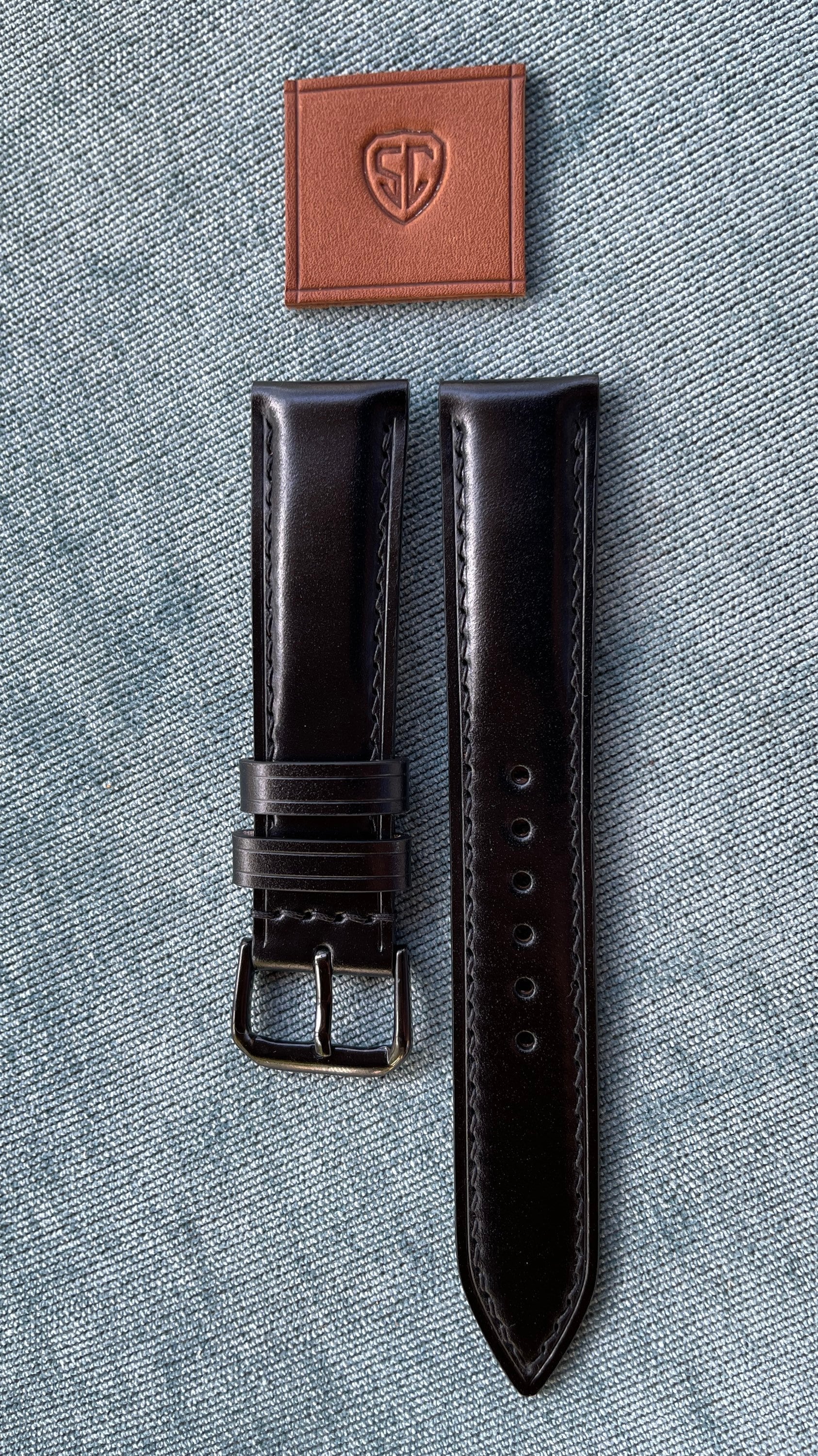 Black Shell Cordovan Watch Strap with Quick Release Spring Bars
