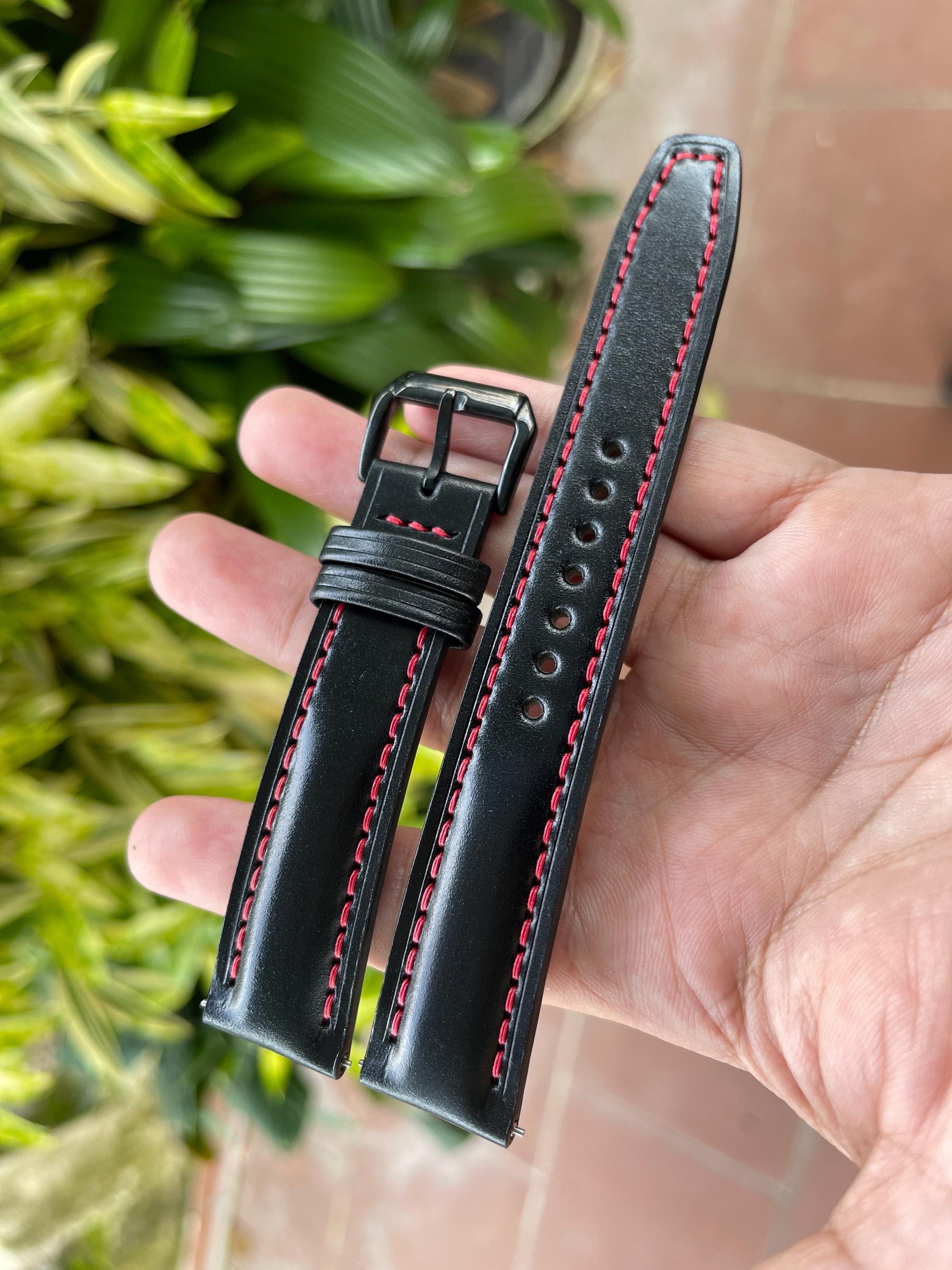 + Luxurious materials: This watch strap has 5 layers of materials. The top layer is Shell Cordovan-an equine leather famous for its durability, self-polishing character, deep color, smooth feel, and bright luster. It is one of the most precious leathers in the world. The leather comes from two areas on the underside of a horses rump where there is a dense flat muscle tissue. Shell cordovan is vegetable tanned using natural tannins from tree bark, chestnuts and leaves... The bottom layer is Haas Zermatt-the specific calf leather for watch straps lining. This Zermatt is selected from good parts of a hide (not the Zermatt scraps or leftovers). In the middle there are 3 layers of filler that create nice shape and add anti-stretch ability to the product. The strap is hand-stitched with Meisi linen thread. You can believe in the durability of this product. As a craftsman I always find high quality materials for all things I make, never think of using cheap and low-quality things to save money and increase profits. The leather I use has a brand name to call, I don't have things that are unclear such as "genuine leather", "real leather"...