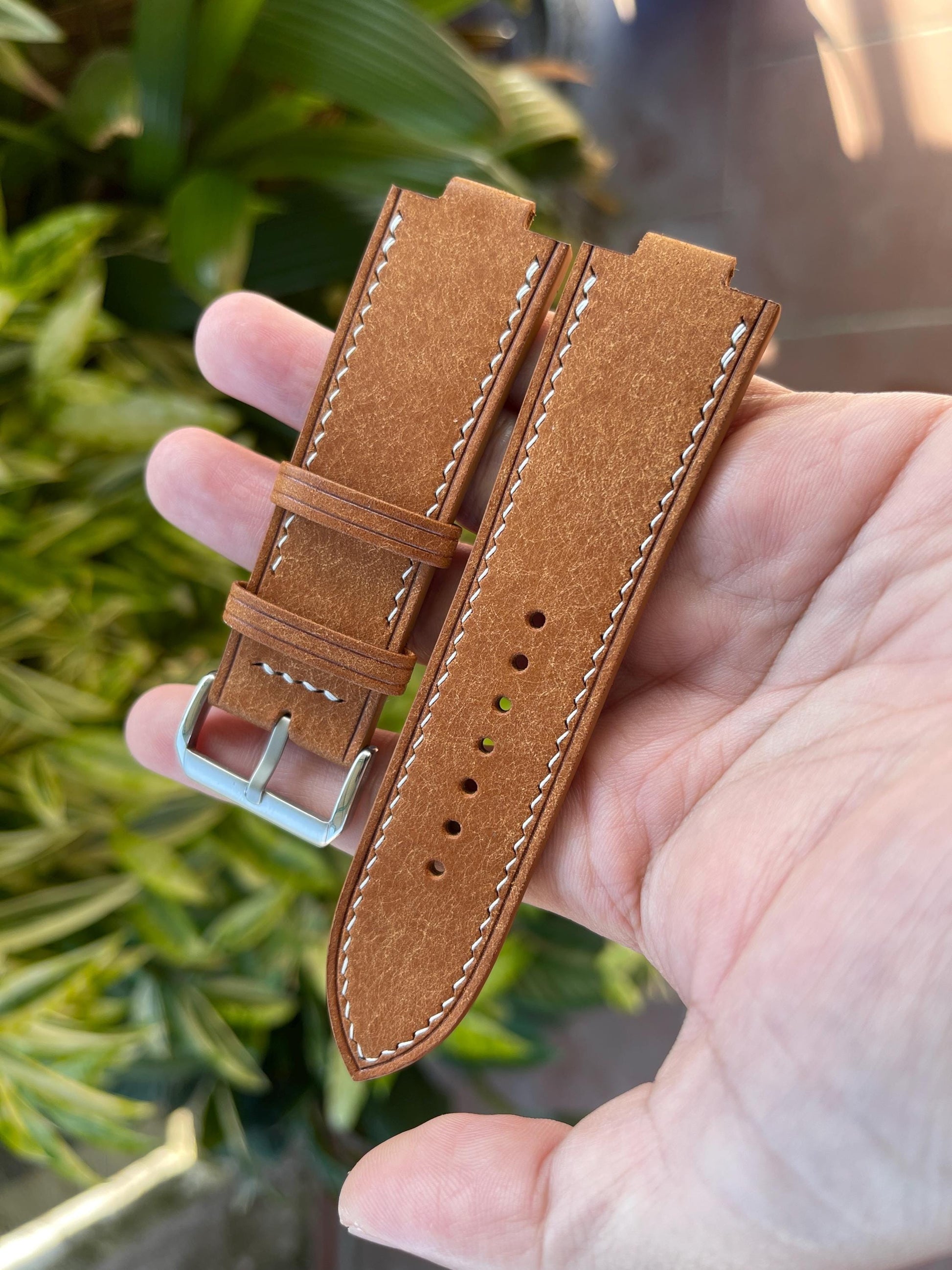 The bottom layer is Haas Zermatt-the specific calf leather for watch straps lining. This Zermatt is selected from good parts of a hide (not the Zermatt scraps or leftovers). In the middle there are 2-4 layers of filler that create nice shape and add anti-stretch ability to the product. The strap is hand-stitched with Meisi linen thread. You can believe in the durability of this product. As a craftsman I always find high quality materials for all things I make, never think of using cheap and low-quality things to save money and increase profits. The leather I use has a brand name to call, I don't have things that are unclear such as "genuine leather", "real leather"...