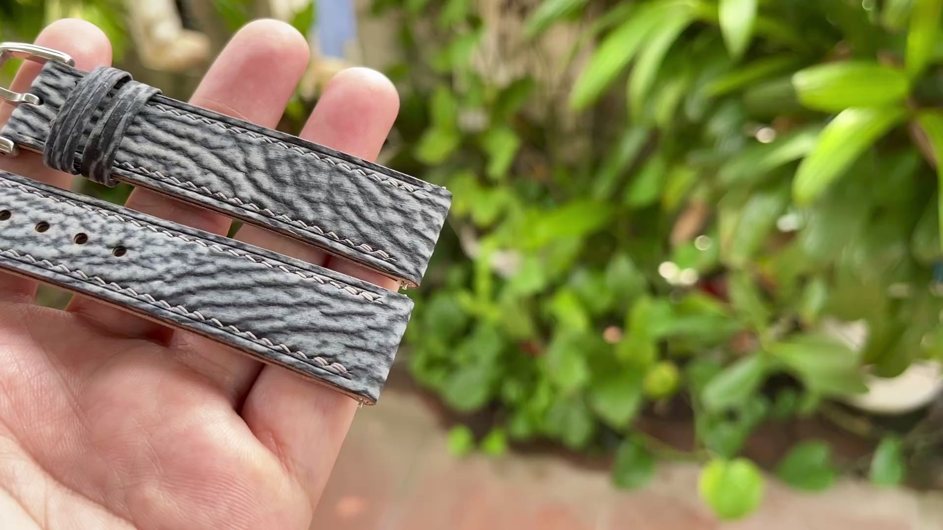 Grey Shark Leather Watch Strap With Quick Release Spring Bars