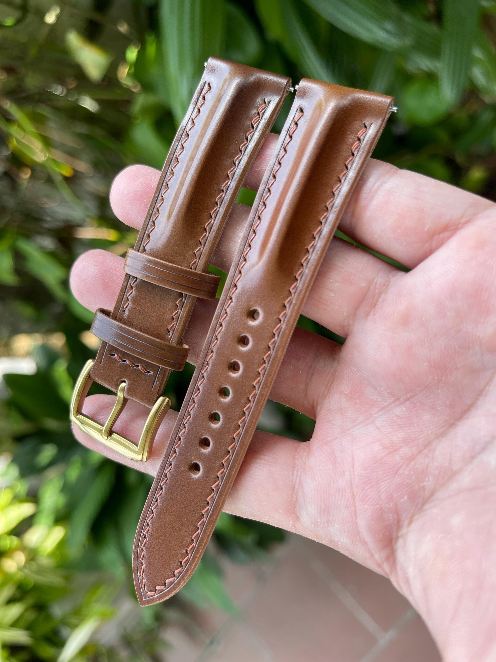 Horween Single Ridge Shell Cordovan Watch Strap, Pre-installed Quick Release Spring Bars