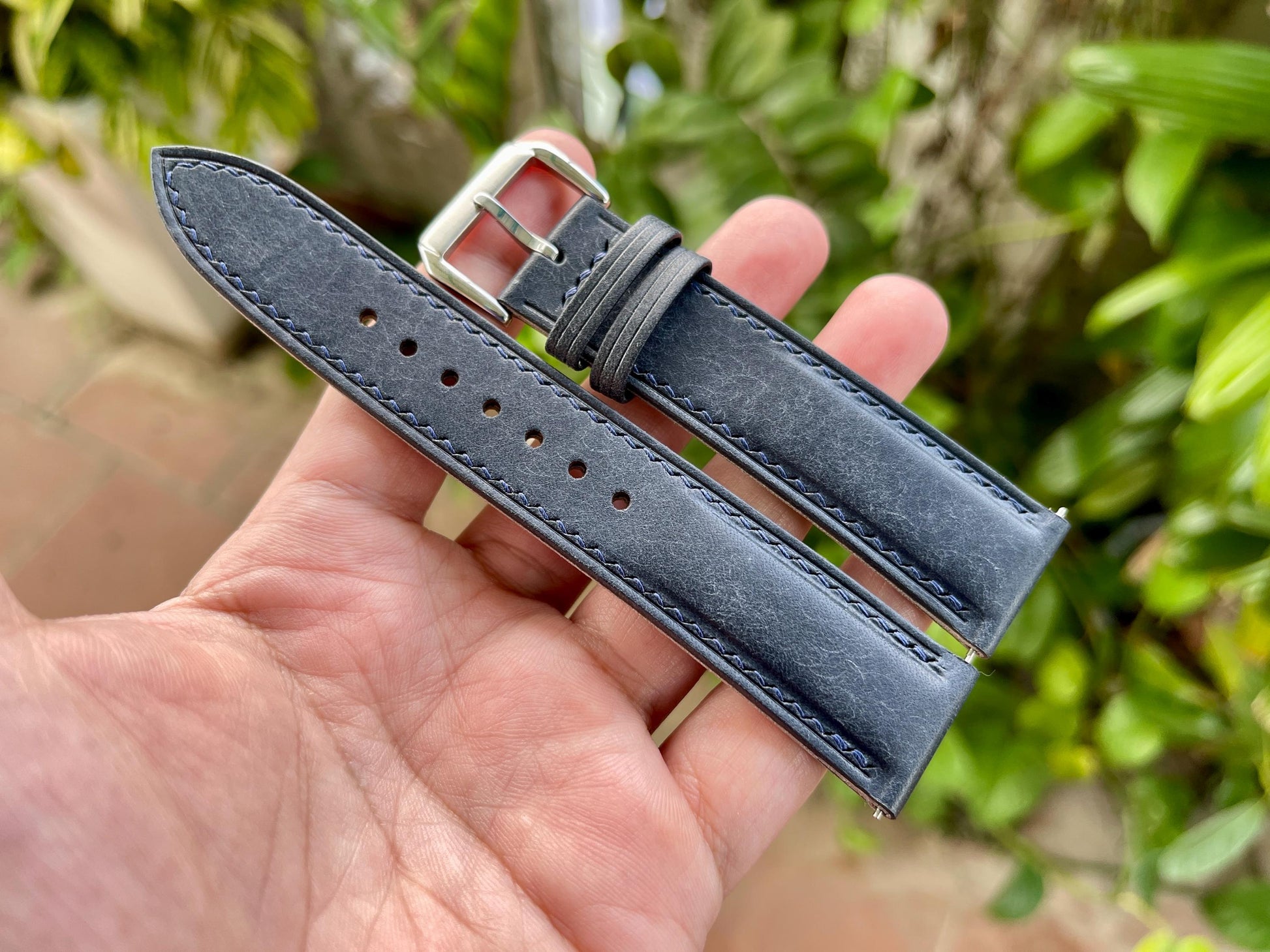 Pueblo Leather Watch Strap In Navy Color, Pre-installed Quick Release Spring Bars