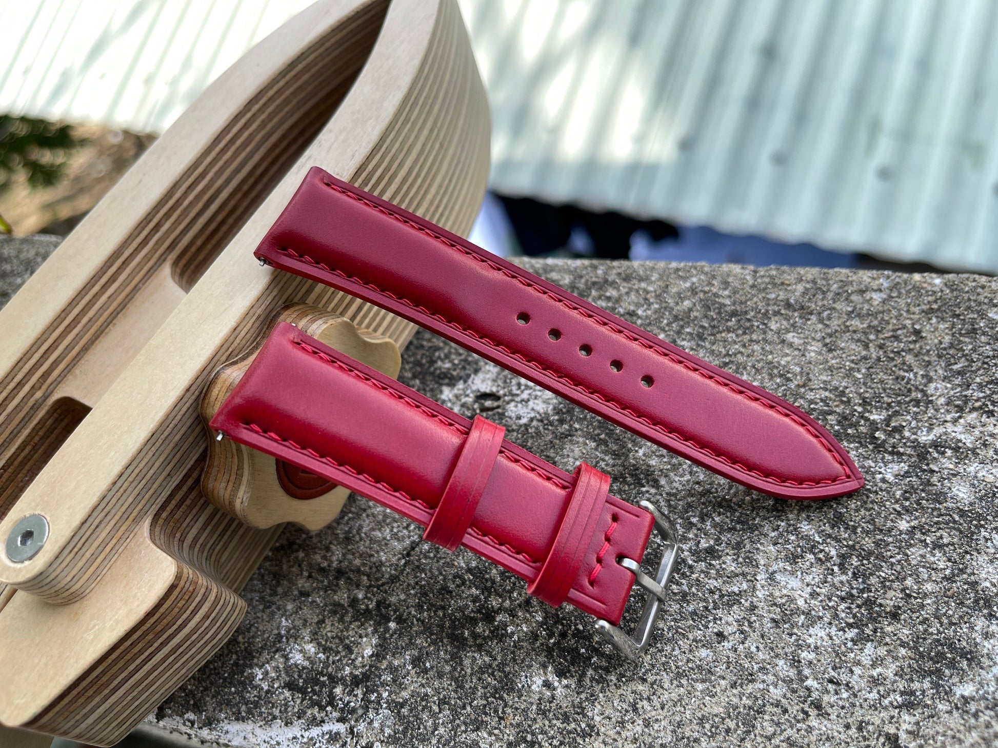 Red Shell Cordovan Watch Strap with Quick Release Spring Bars