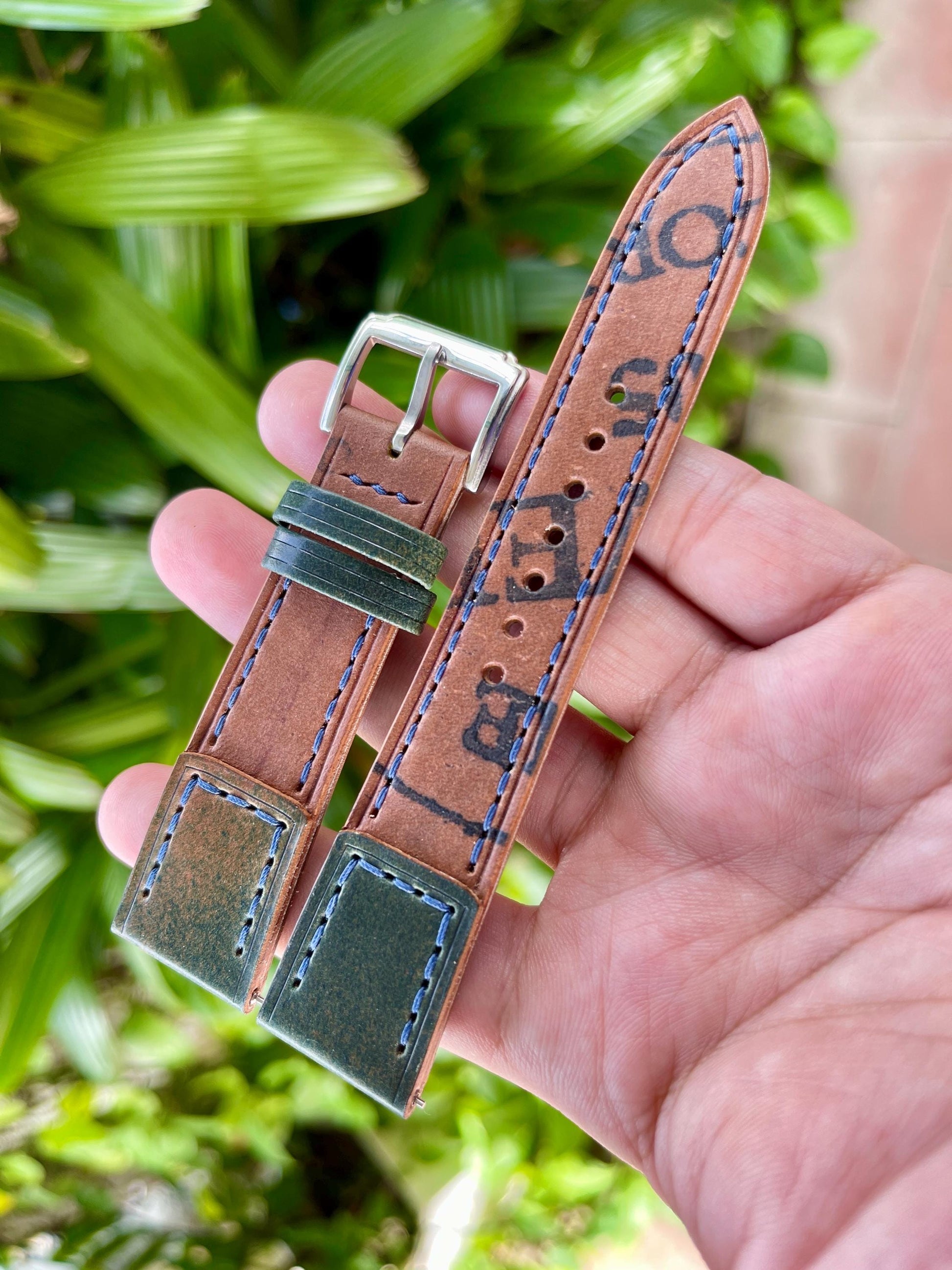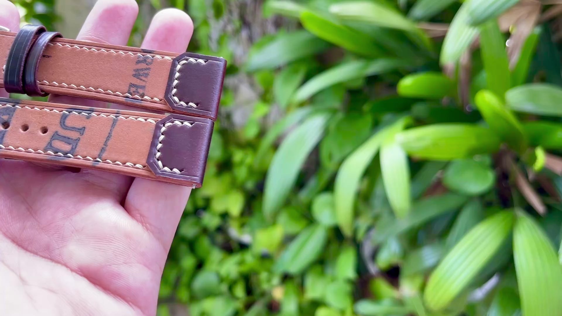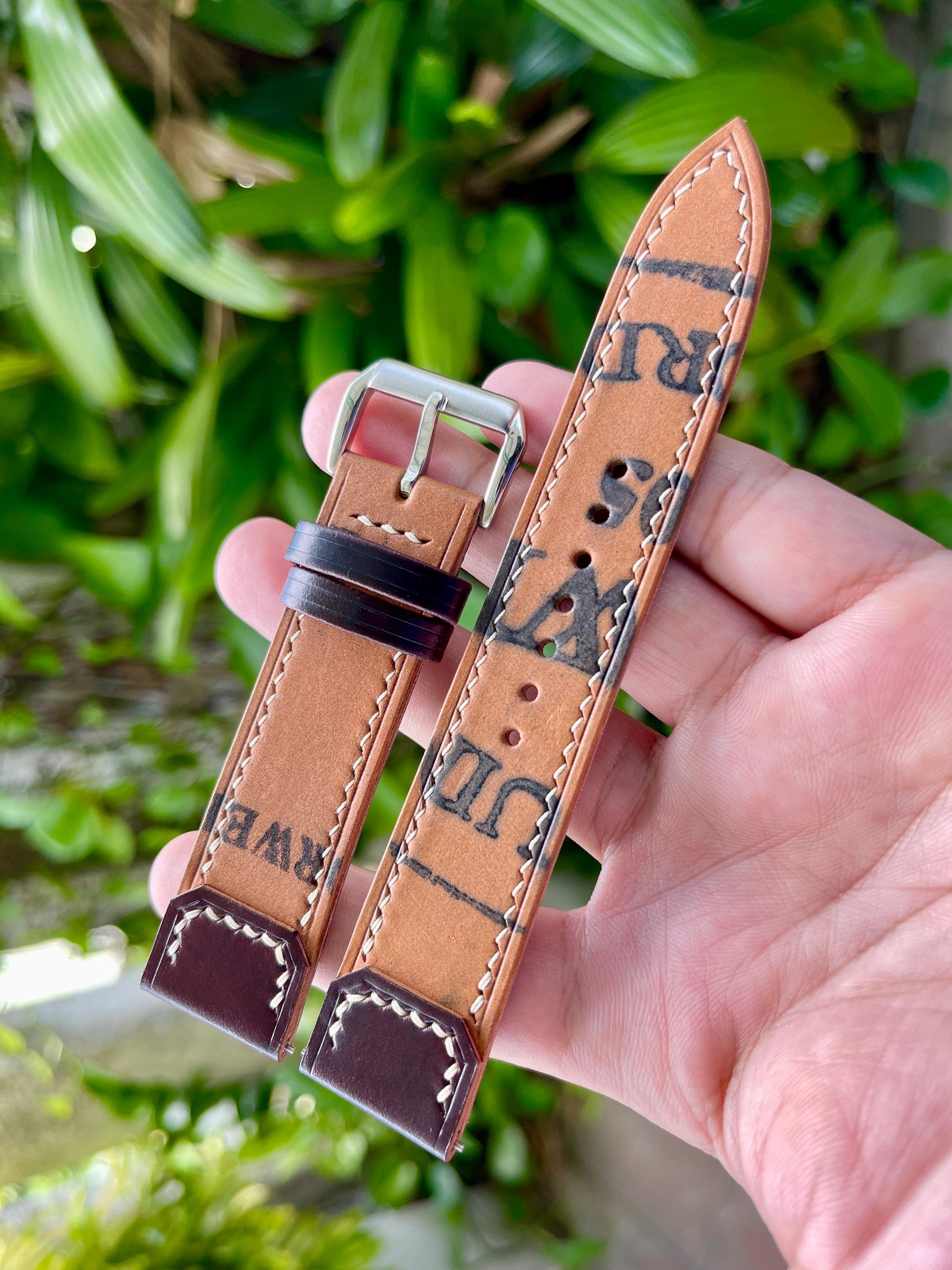 This watch strap is made entirely from Horween shell cordovan. Usually, I use Zermatt leather with waterproof ability to make the lining of the strap, but in this case I used Horween shell cordovan. Horween's shell cordovan is famous for its durability, although it is not waterproof, its resistance to water and sweat is excellent. Therefore, with a strap made entirely from Horween shell cordovan leather like this, you have not only a luxury product that matches your luxury watch, but also a product with high durability that can be used for a long time. In addition, with the Reverse side and the Horween brand ink stamp shown on the top side of the strap, the luxury and specialness of the product is greatly increased. I myself am using a full Horween shell cordovan strap for my favourite watch, along with a Reverse Horween wallet, and I must say the feel of them is exceptional, beyond compare.
