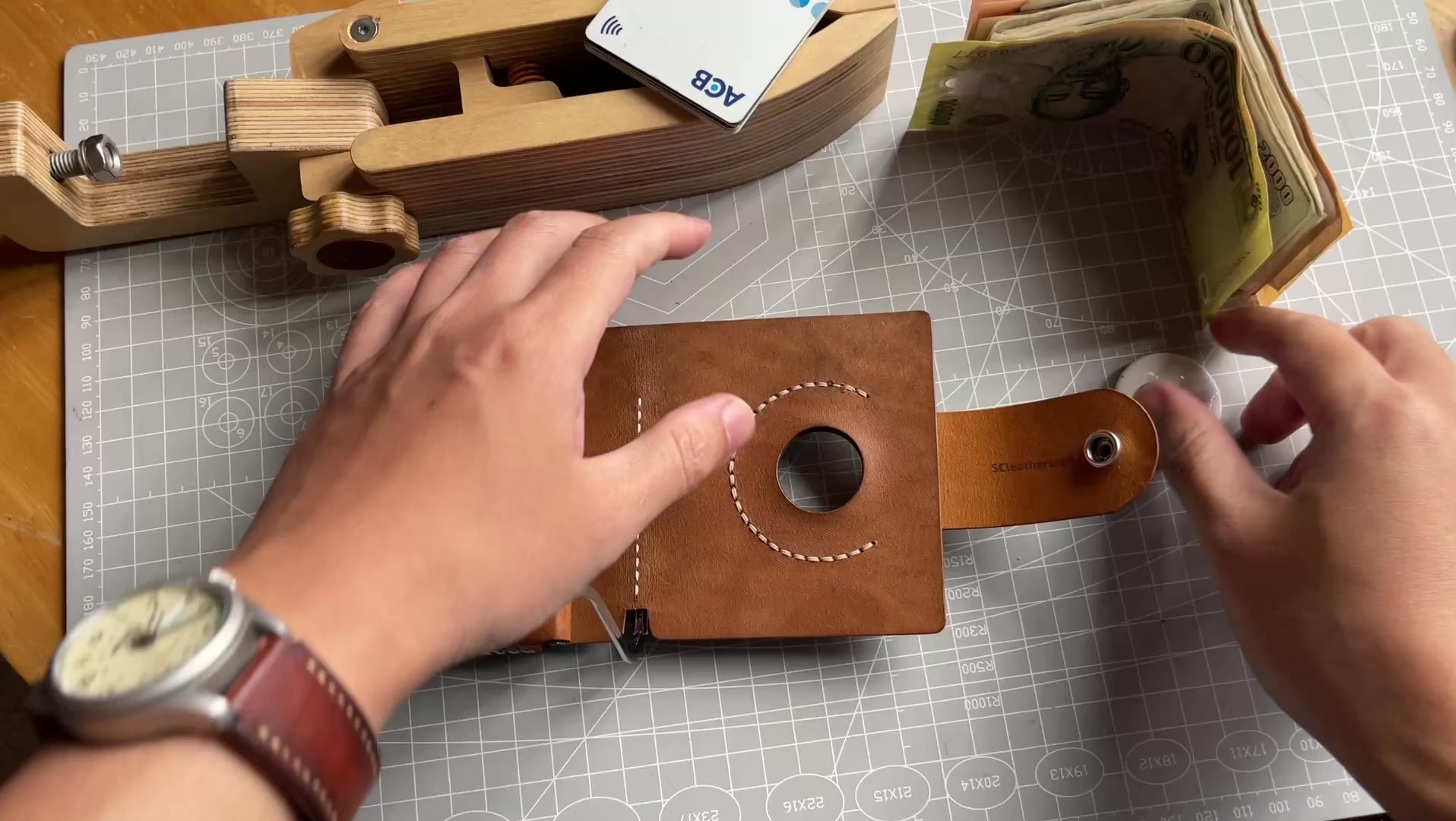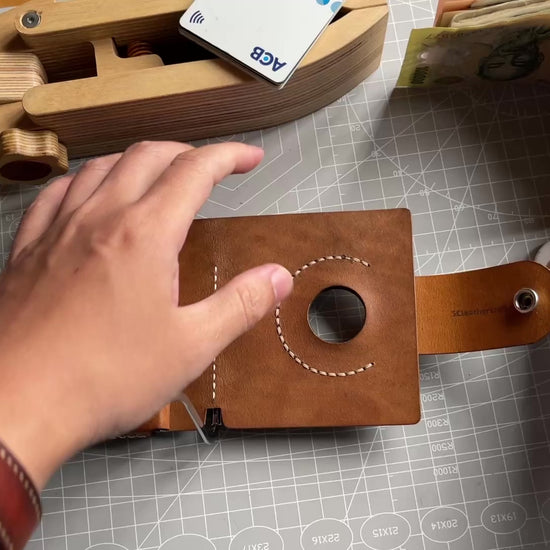 This SC Wallet 4 is designed and finished by SCleathercraft. It is suitable to be used as an EDC wallet that can hold 6-8 ATM cards, a stack of cash and bills. The mechanics of this wallet help you to get the right ATM card you need quickly and easily. The card case is made of aluminum alloy combined with ABS plastic details and metal spring. If in the future this case is broken, you can replace it with a new similar one while still using the leather part, no need to buy a new wallet.